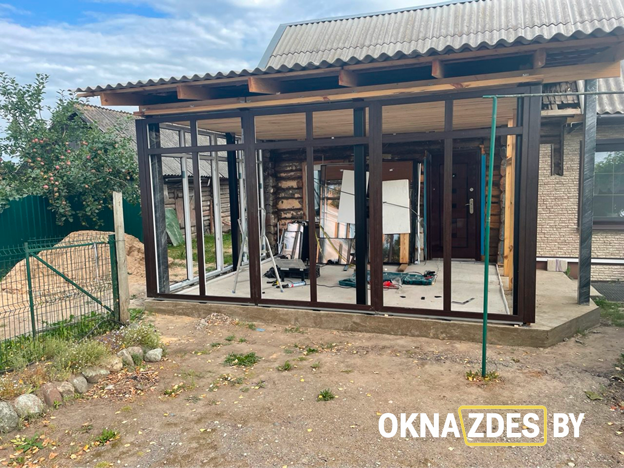 Купить остекление террасы ПВХ Salamander Streamline 76 с бронзовым стеклопакетом в Минске