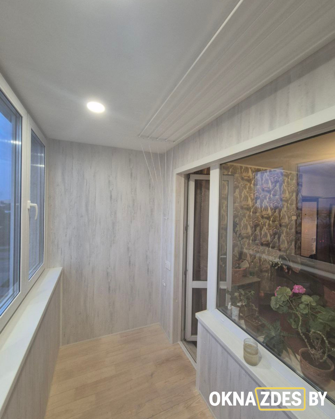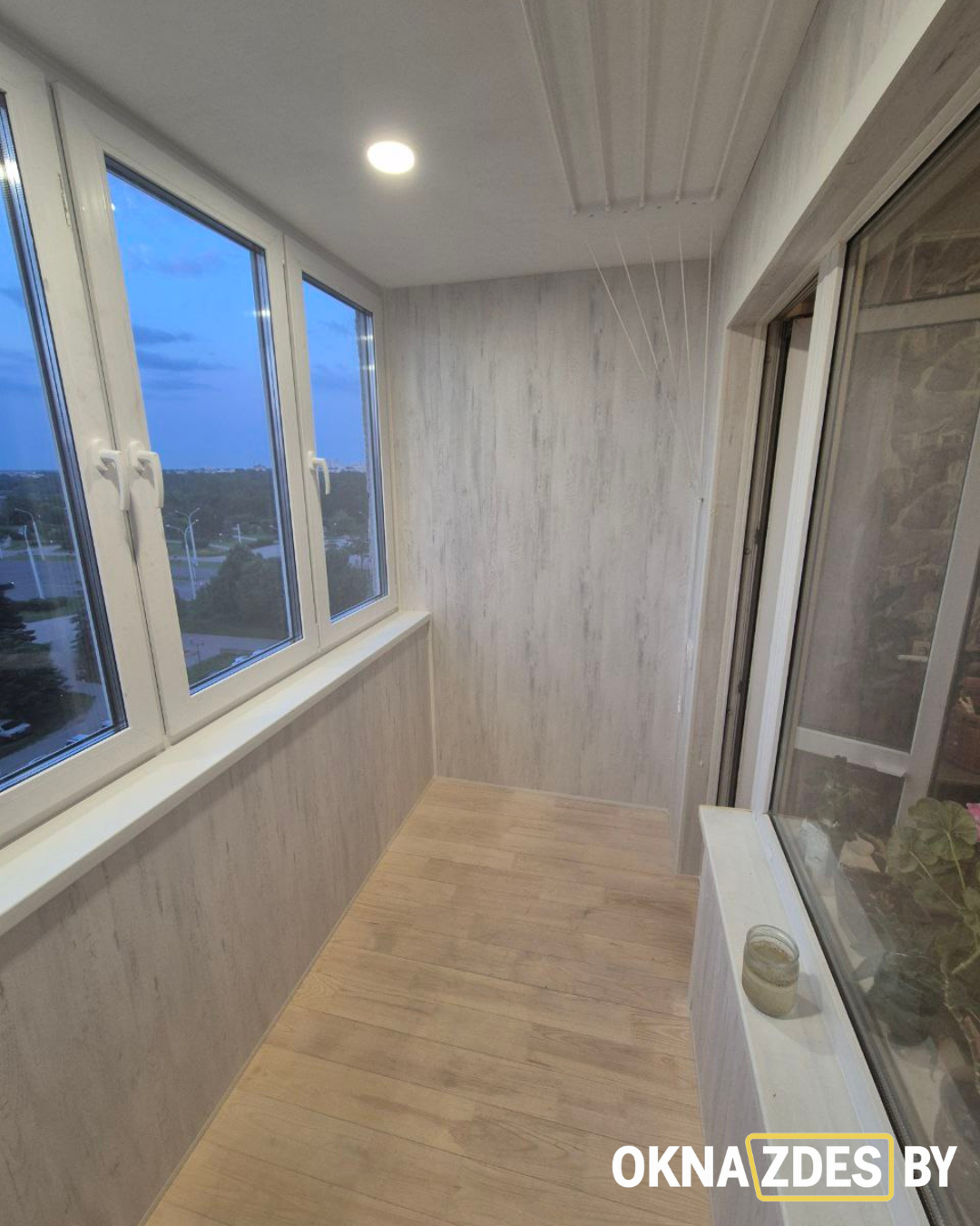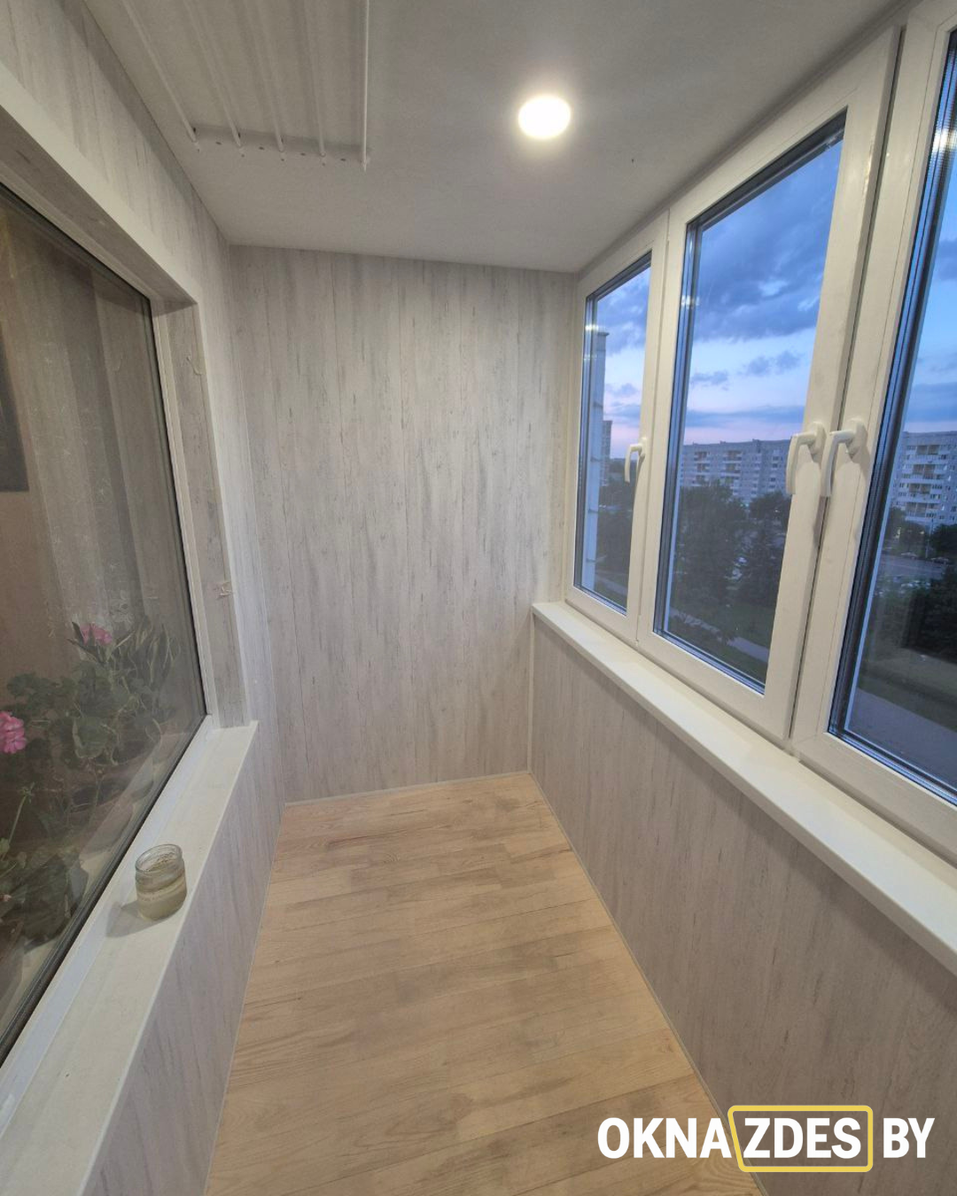 Обшивка балкона ламинированными ПВХ-панелями и монтаж пола под доску — Минск