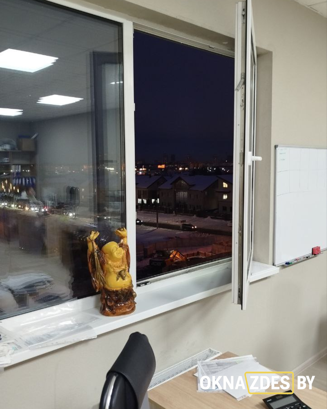 Окно ПВХ KBE 70 мм с двухкамерным стеклопакетом 40 мм и фурнитурой Roto — офис (Минск)