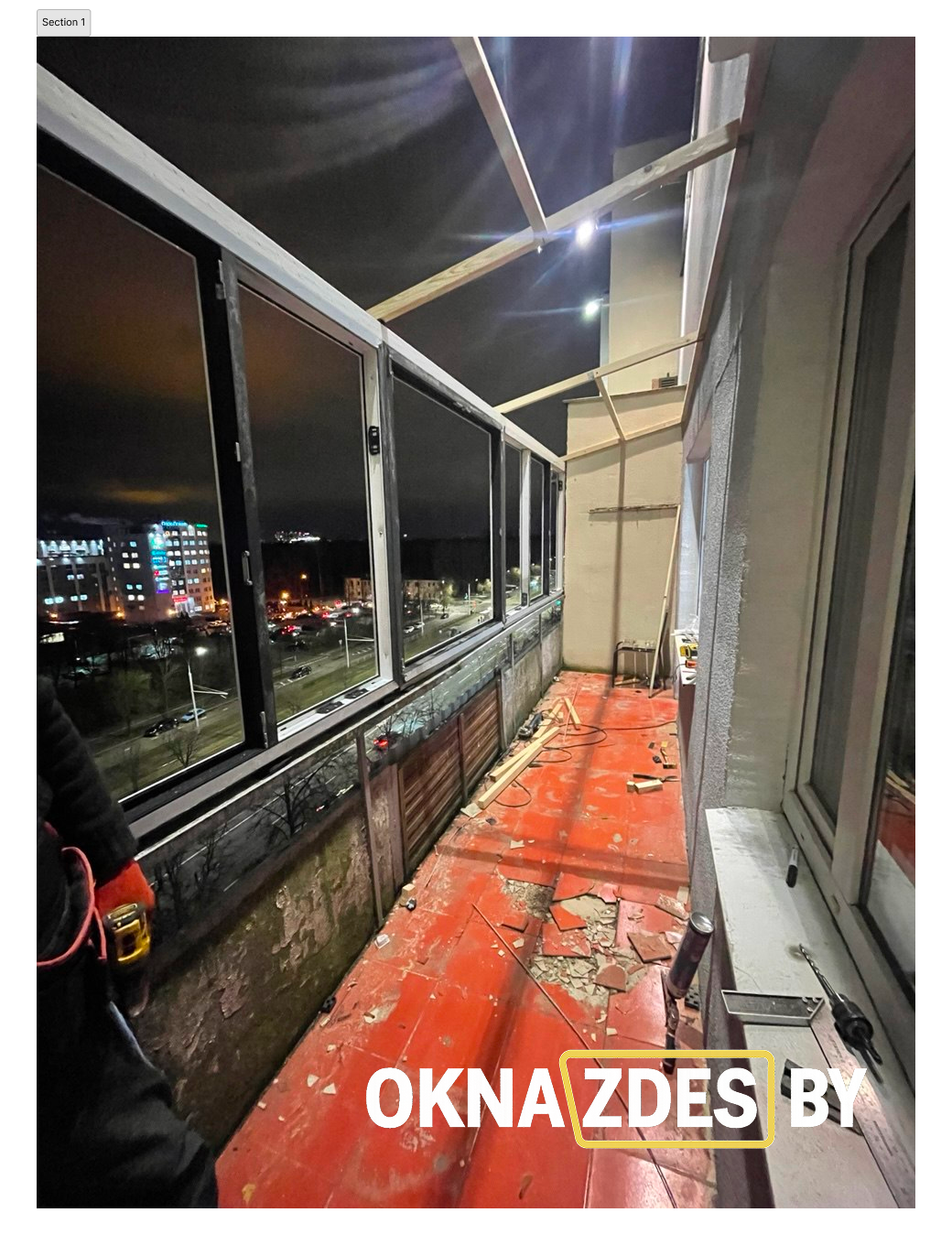 Тёплое остекление длинной лоджии ПВХ (поворотно-откидные, антрацит) — Минск